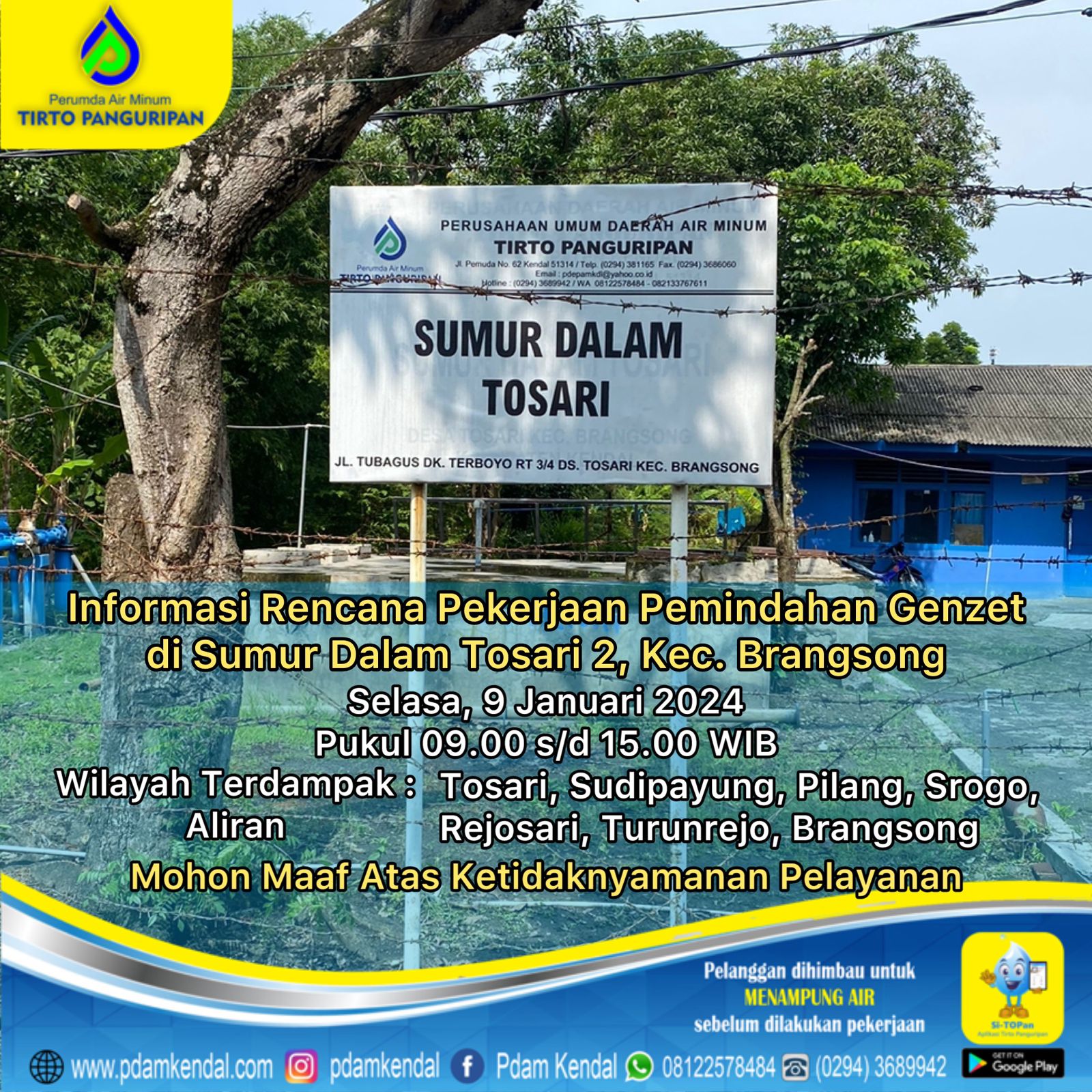 Informasi Gangguan Pelayanan untuk Pelanggan Perumda Air Minum Tirto Panguripan khususnya wilayah pelayanan Kendal Barat dan sekitarnya