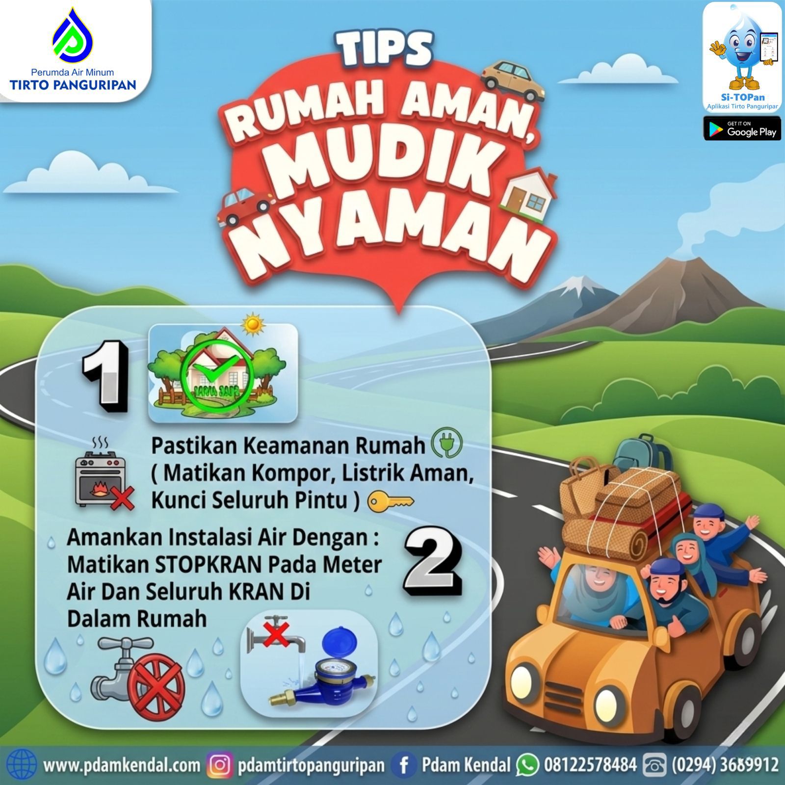 Waah mudik telah tiba nih! Mudik kemana nih pelanggan? Sebelum berangkat ketemu keluarga tercinta, jangan lupa cek keamanan rumah instalasi air dulu ya supaya mudiknya makin tenang dan nyaman. Hal kecil seperti ini bisa mencegah kebocoran air saat rumah ditinggal lama loh!