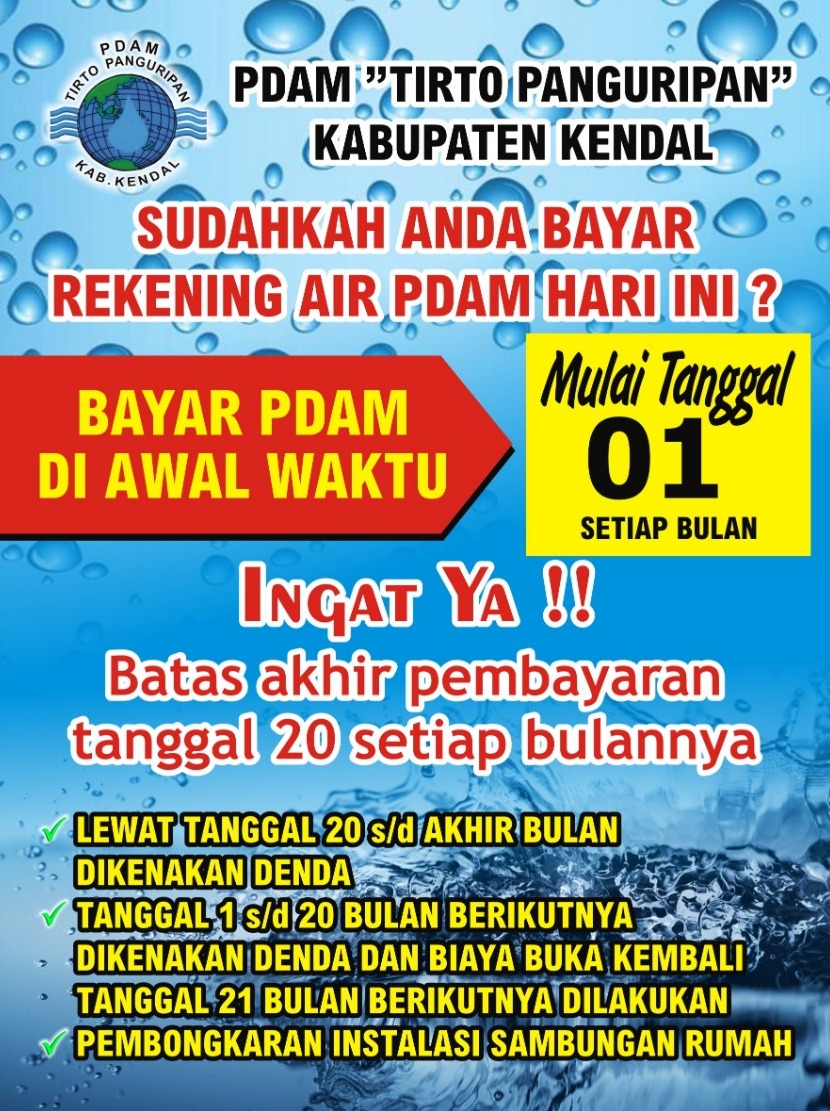 dengan banyaknya channel pembayaran tagihan rekening air pdam semakin mempermudah pelanggan untuk dapat membayar tagihan rekening air tepat waktu dan tidak kena denda.