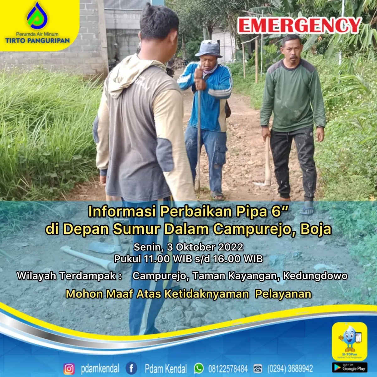 Dengan adanya perbaikan pipa 6" di depan sumur dalam Campurejo, Boja