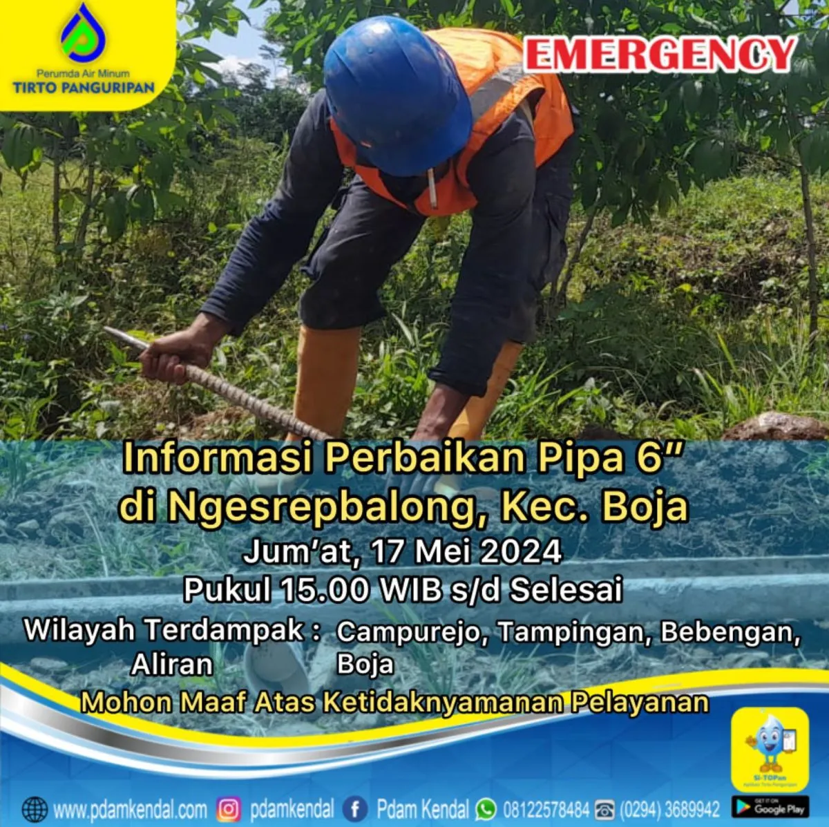 Informasi perbaikan pipa 6” di Ngesrepbalong, Kec. Boja.