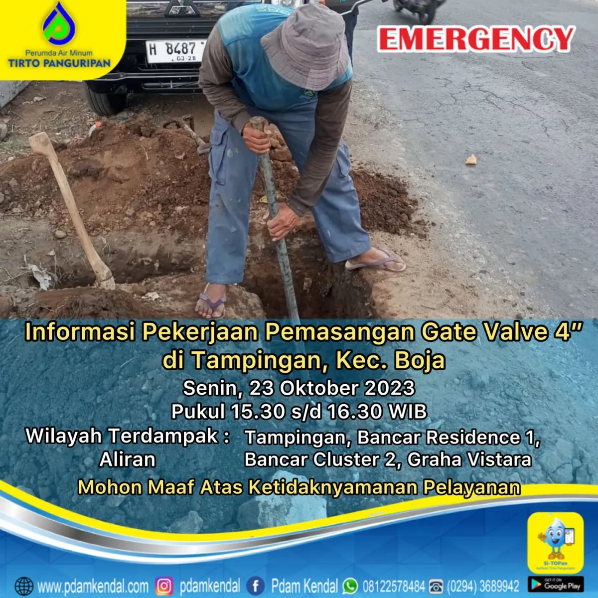 Informasi pekerjaan pemasangan gate valve 4" di Tampingan, Kec. Boja