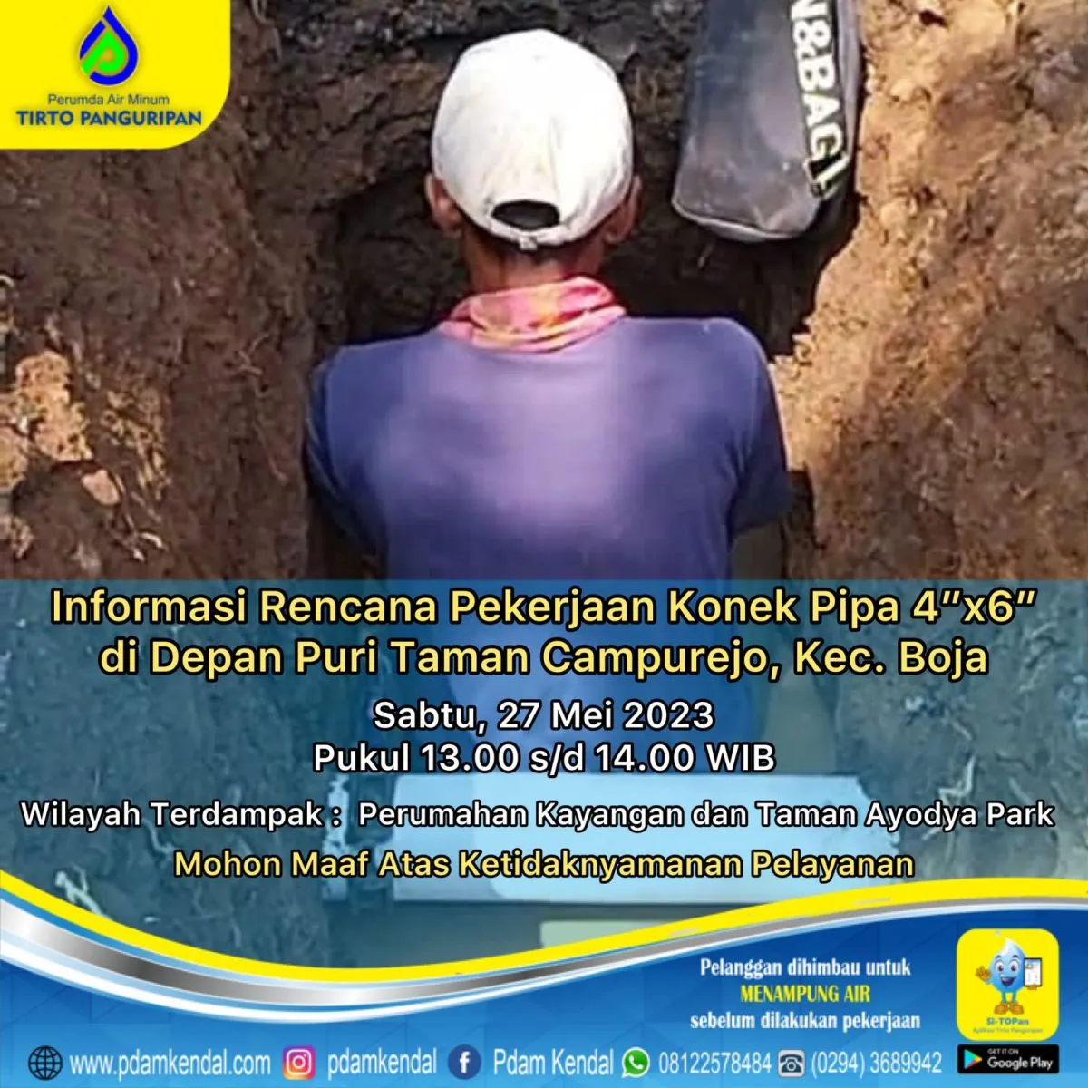 Informasi rencana pekerjaan lonek pipa 4”x6” di depan Puri Taman Campurejo, Kec. Boja.