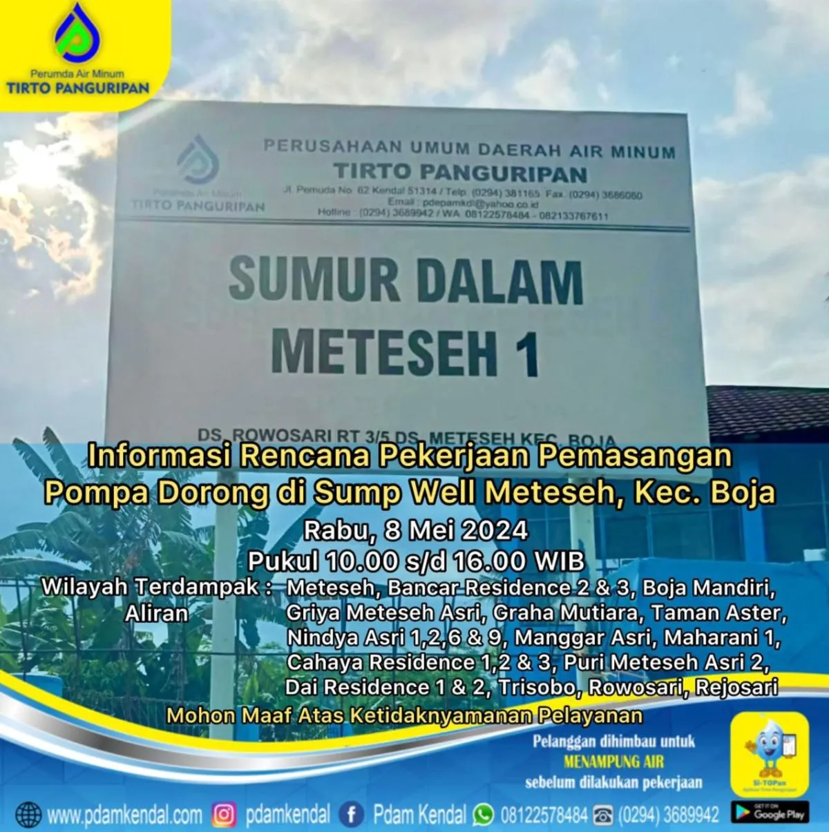 Informasi rencana pekerjaan pemasangan pompa dorong di Sump Well Meteseh, Kec. Boja.