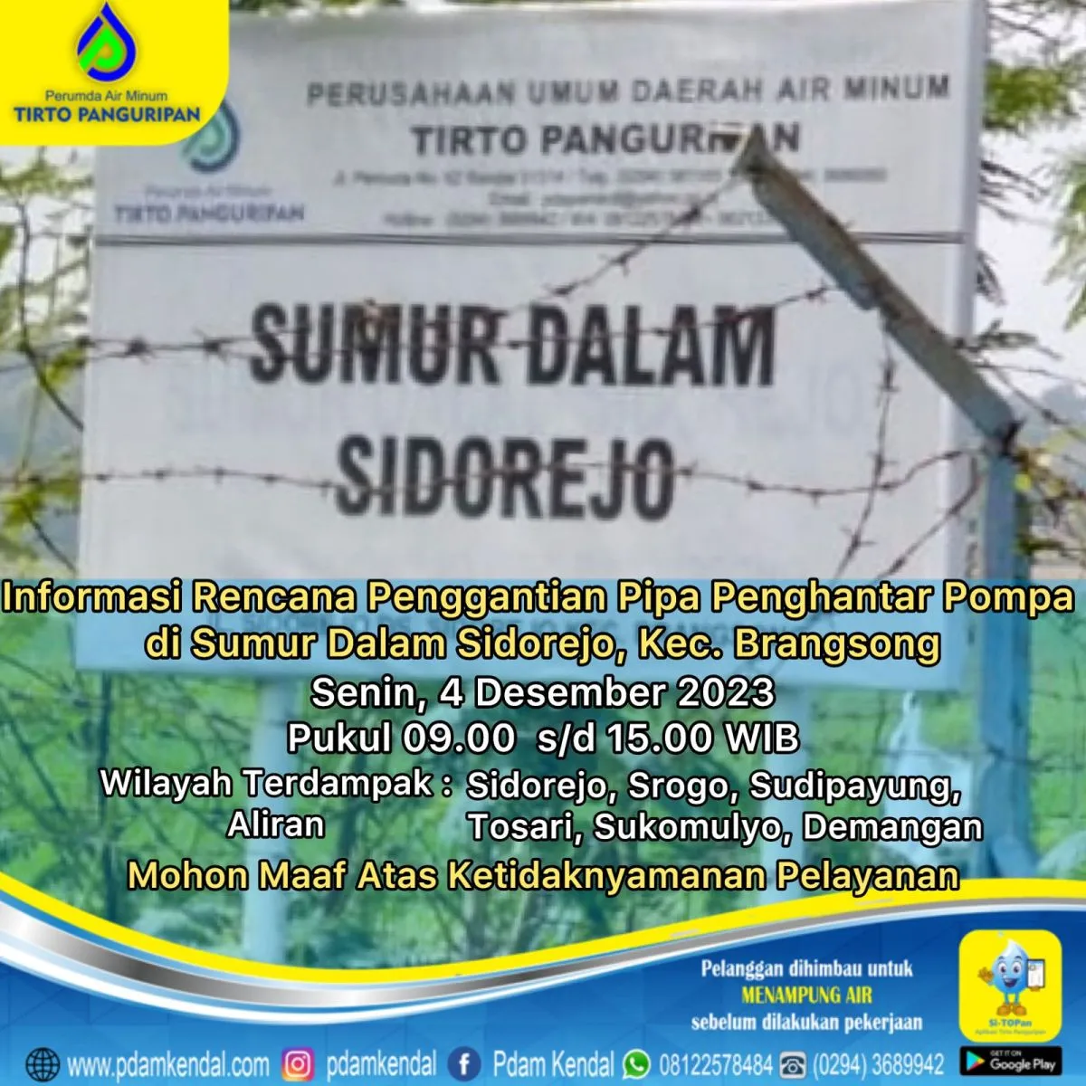 Informasi rencana penggantian pipa penghantar pompa di Sumur Dalam Sidorejo, Kec. Brangsong.
