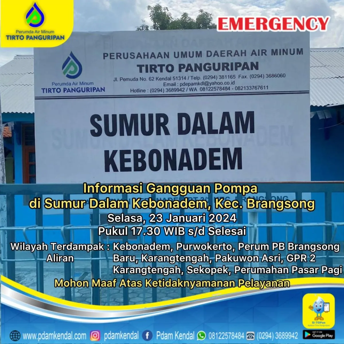 Informasi gangguan pompa di Sumur Dalam Kebonadem, Kec. Brangsong.