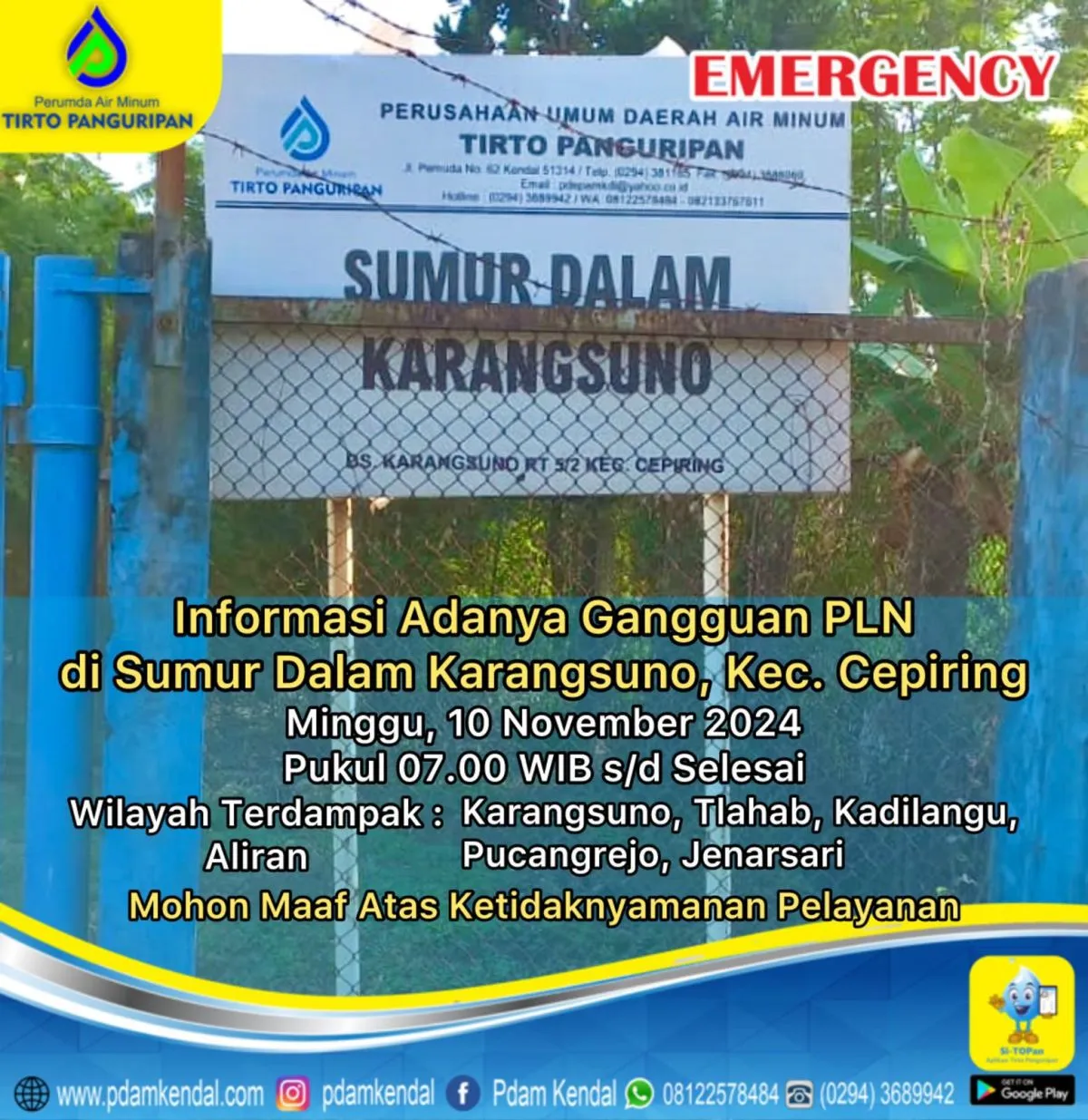Info Gangguan Pelayanan Wilayah Cepiring 10-11-2024