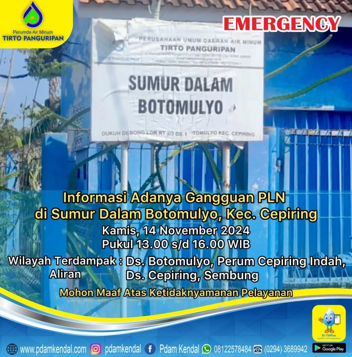 Info Gangguan Pelayanan Wilayah Cepiring 14-11-2024
