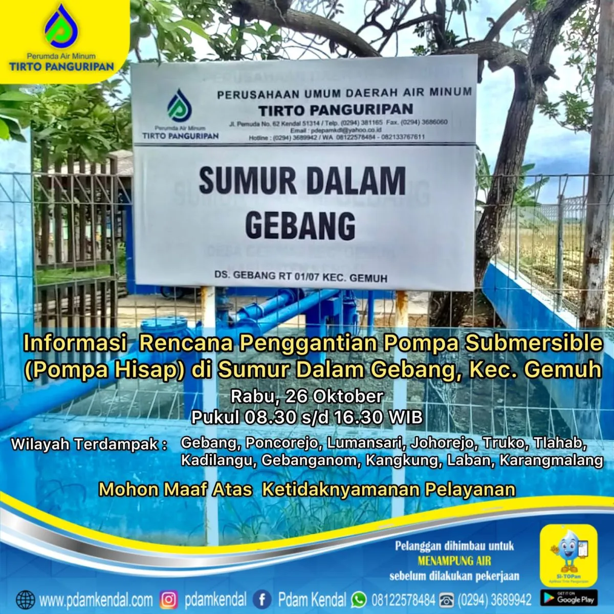 Sehubungan adanya rencana penggantian pompa submersible (pompa hisap) di Sumur Dalam Gebang, Kec. Gemuh