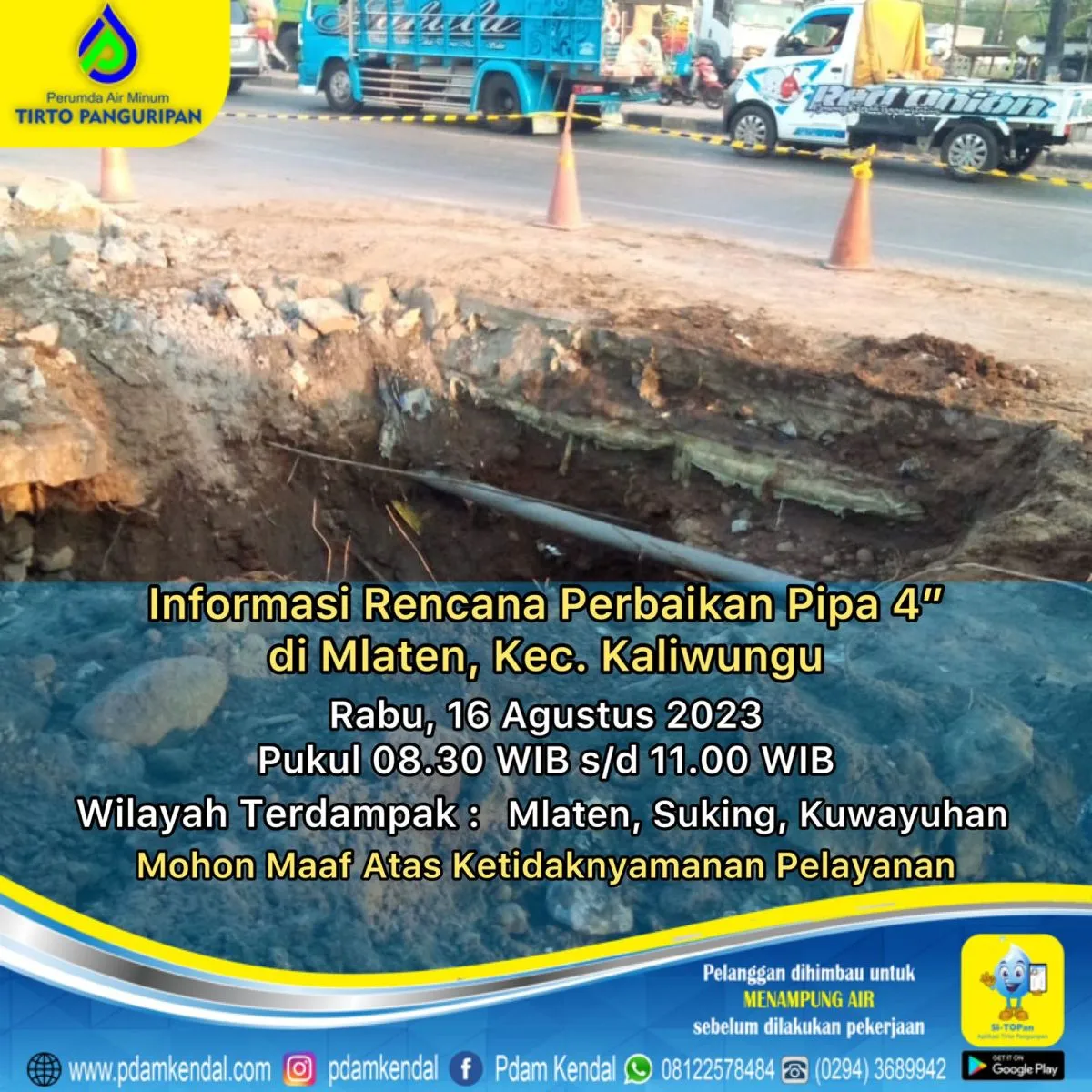 Informasi rencana perbaikan pipa 4" di Mlaten, Kec. Kaliwungu.