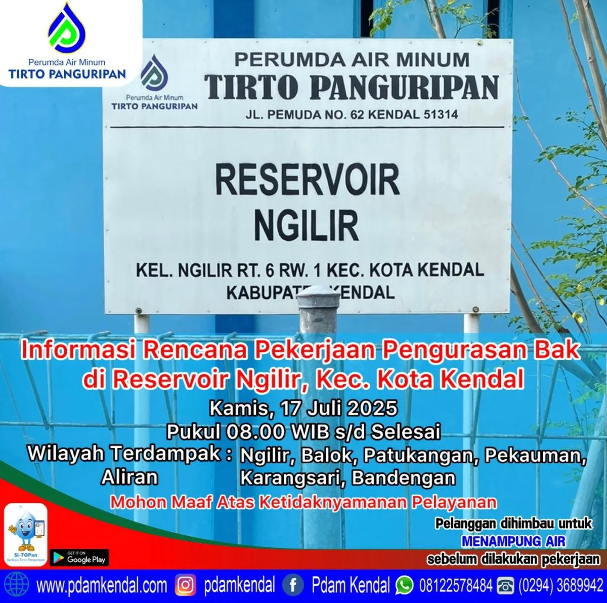 Informasi Rencana Pekerjaan Pengurasan Bak di Reservoir Ngilir, Kec. Kota Kendal.