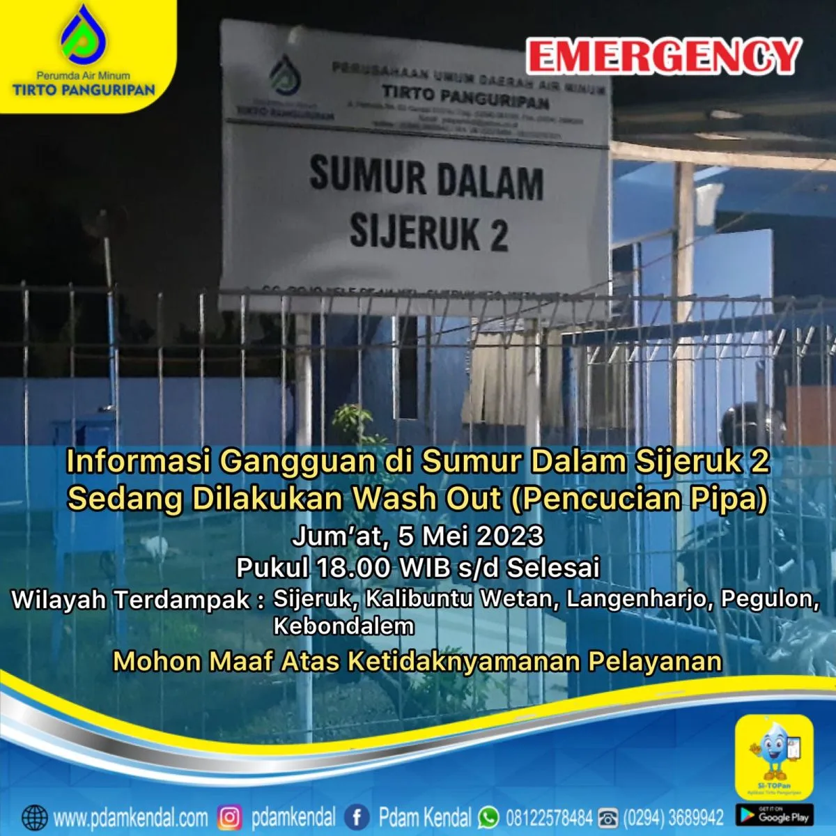 Informasi ganguan di Sumur Dalam Sijeruk 2, sedang dilakukan wash out (pencucian pipa).
