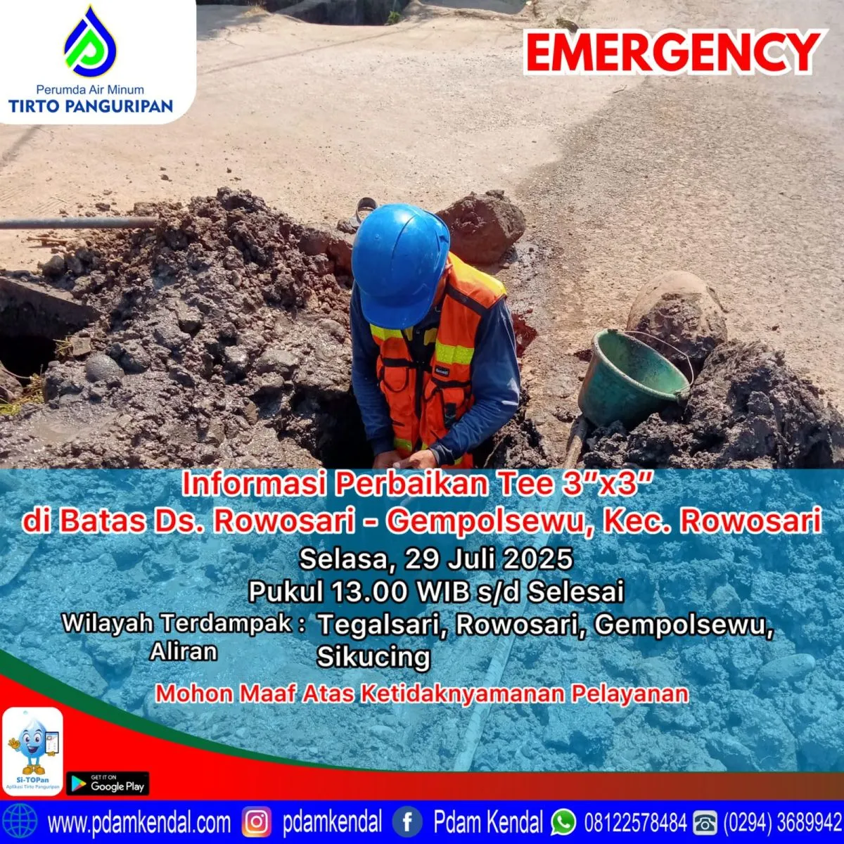Info Gangguan Pelayanan Wilayah Rowosari 29-7-2025