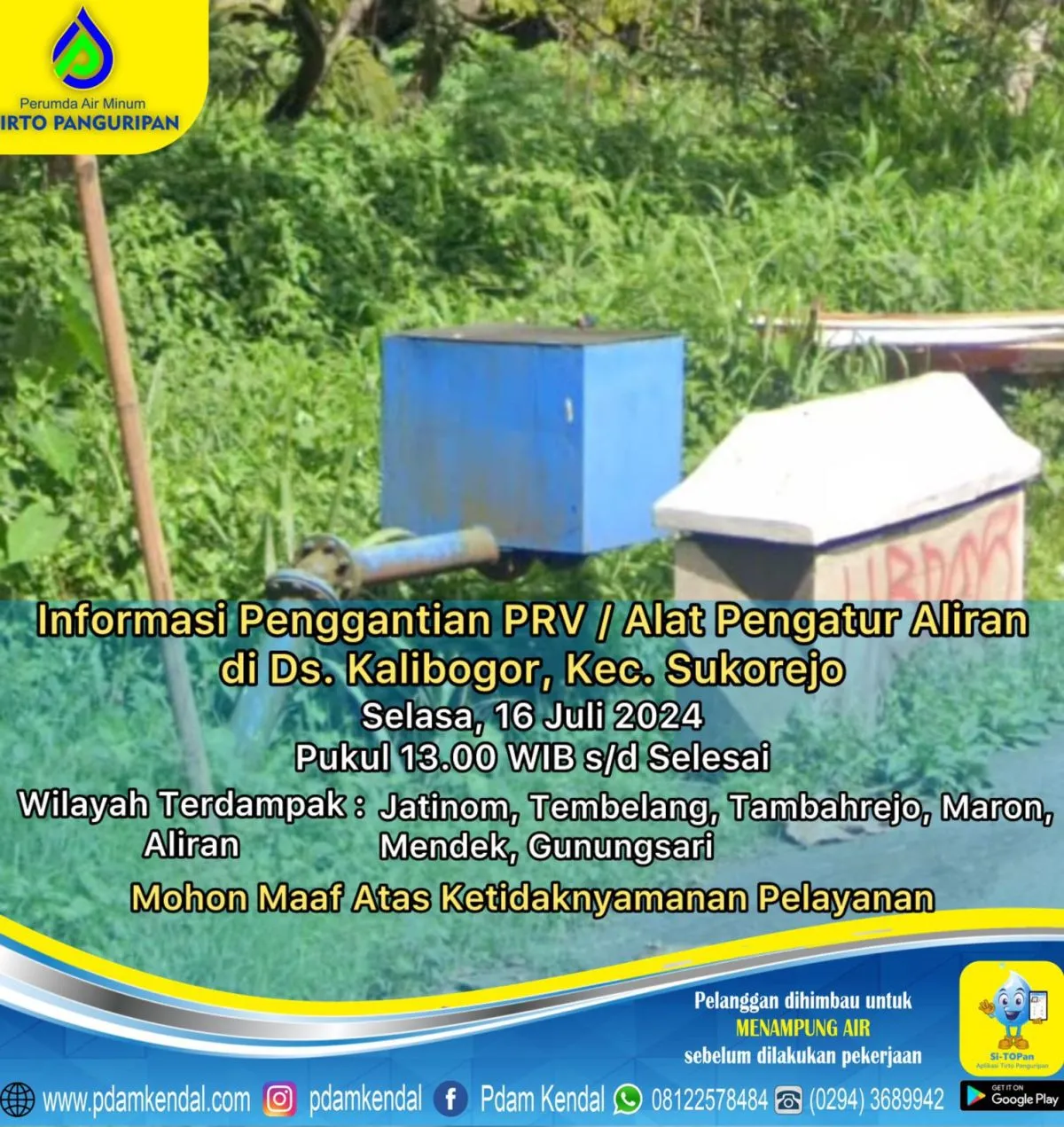 Informasi penggantian PRV / alat pengatur aliran di Ds. Kalibogor, Kec. Sukorejo.