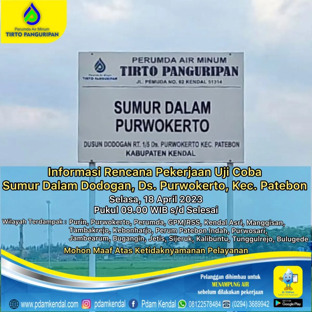 Informasi rencana pekerjaan uji coba Sumur Dalam Dodogan, Ds. Purwokerto Kec. Patebon