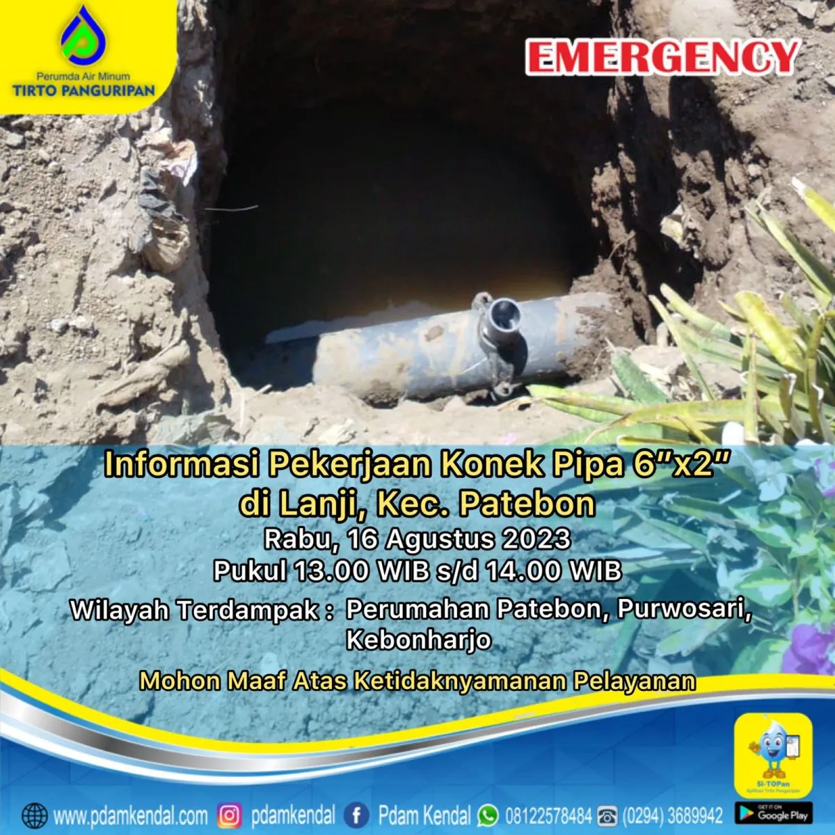 Informasi pekerjaan konek pipa 6"x2" di Lanji, Kec. Patebon.