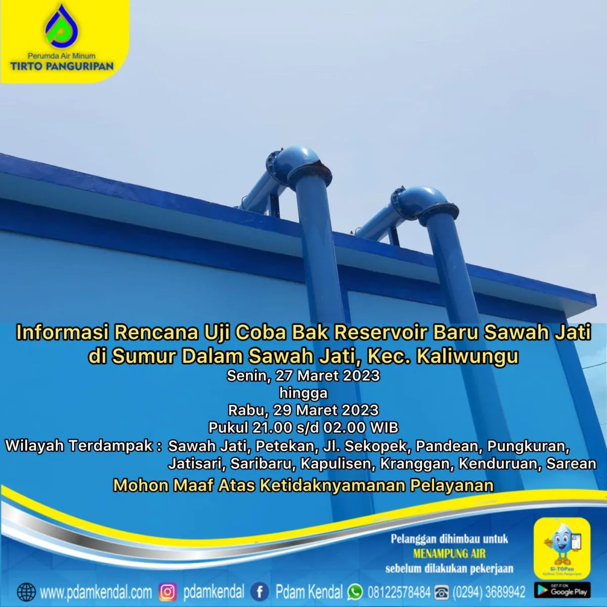 Hal tersebut akan menyebabkan aliran terganggu di wilayah Sawah Jati, Petekan, Jl. Sekopek, Pandean, Pungkuran, Jatisari, Saribaru, Kapulisen, Kranggan, Kenduruan, Sarean Dihimbau kepada pelanggan untuk menampung air