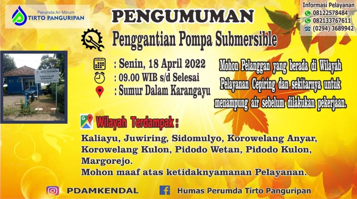Informasi Gangguan Pelayanan untuk Pelanggan Perumda Air Minum Tirto Panguripan khususnya wilayah pelayanan Kaliwungu dan sekitarnya