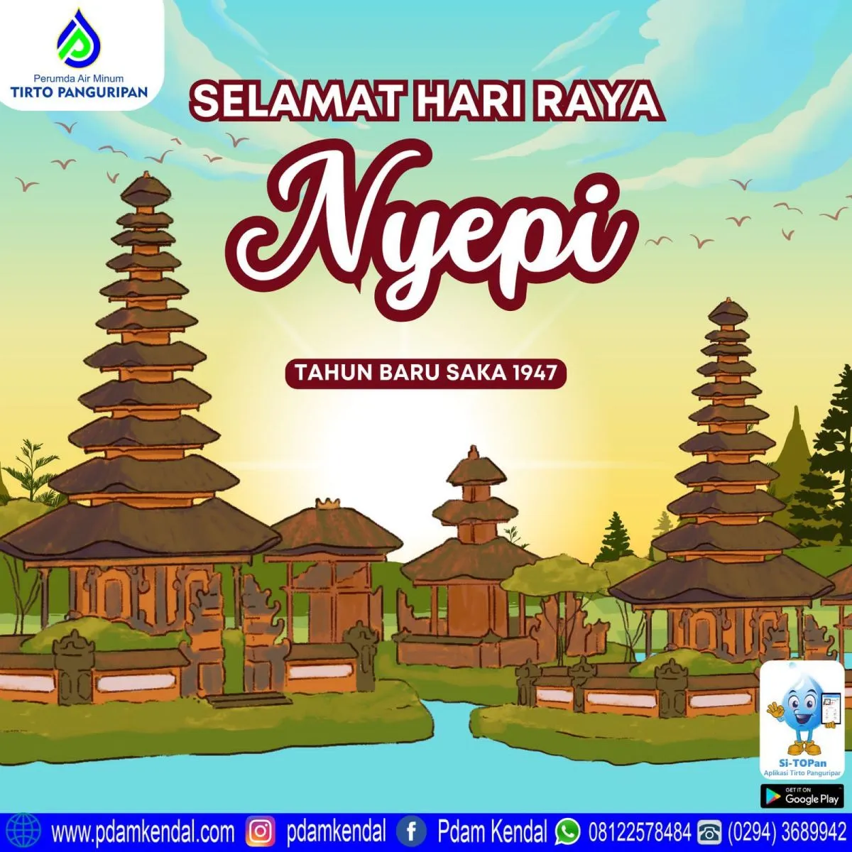 Segenap jajaran direksi beserta karyawan Perumda Air Minum Tirto Panguripan mengucapkan : Selamat Hari Raya Nyepi. Tahun Baru Saka 1947. Info atau pengaduan dapat menghubungi nomor WA Pengaduan kami 08122578484. Mohon bantuan like dan support media sos